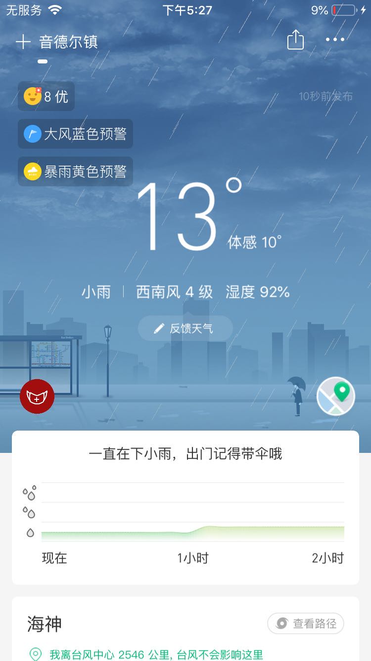 精確到分鐘級(jí)降水預(yù)報(bào) 長(zhǎng)達(dá)五天的多數(shù)據(jù)源天氣預(yù)報(bào) 獨(dú)家全國(guó)降水雷達(dá)拼圖 關(guān)注地址獲取降雨提醒
